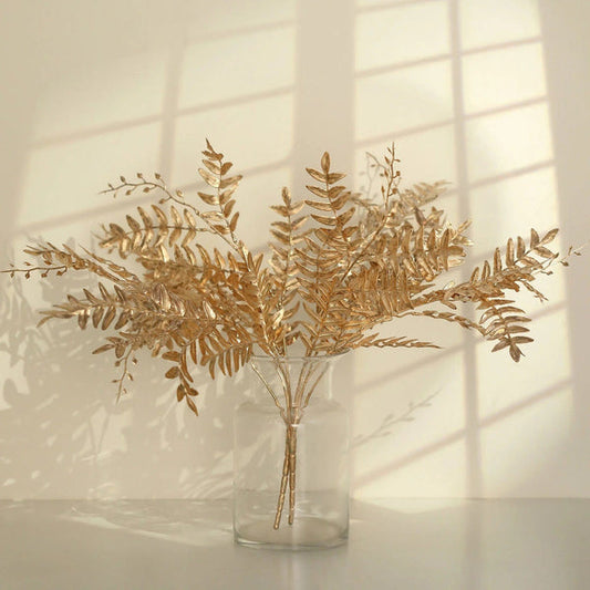 2 Gold 21 in Artificial Fern Leaves Branches Metallic Faux Greenery Stems