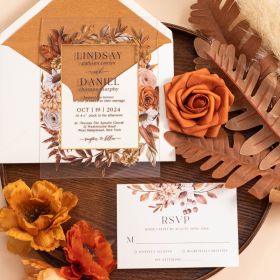Rustic Terracotta Floral Border Acrylic Wedding Invitation Swal127