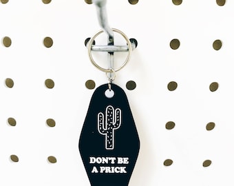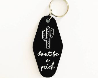 Don't be a Prick, Vintage Hotel KeyChain, Cactus,Gift Ideas,Personalized,Gift Tags,Custom Gift,Laser Cut and engraved,Vintage,Keys,Accessory