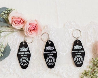 Custom Name Keychains - Vintage Motel Keychain, Fun Wedding Favors, keytag Escort cards, keychain wall,place card,Personalized Keychain,30