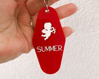 Cupid Keychain,custom,Vintage hotel gift tag,bridesmaids gift,for her,mid mod theme,palm springs,las vegas,Keychains,personalized gift, 1 ct