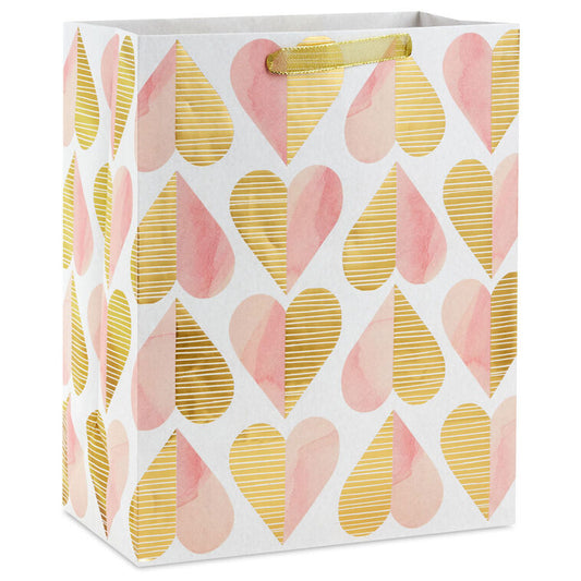 13" Romantic Gold and Pink Hearts Large Gift Bag