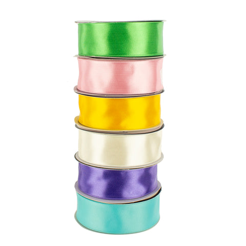 Wired Supreme Ribbon Assortment - #9 Size, 6 Rolls (25 Yards Each) Elevate your ribbon selection with our Wired Supreme Ribbon Assortment - a curated set of six premium #9 satin ribbons, each 1.5" wide and 25 yards long. This collection features a fresh palette of versatile colors with a soft satin finish and durable wired edges, making it ideal for bows, bouquets, packaging, and decorative accents across every season. Crafted with care and consistency, these ribbons hold their shape beautifully and are perfect for professional designers, florists, and crafters who want both form and function. Included Colors: Mineral Ice (SM09-324) Bud Green (SM09-549) Maize (SM09-650) Delphinium (SM09-464) Ivory (SM09-810) Lt Pink (SM09-117) Details: Size: #9 (1.5" wide) Length: 25 yards per roll Edge: Wired for shaping and structure Finish: Smooth, high-quality satin Pack Includes: 6 assorted rolls (1 of each color) Perfect for event work, everyday use, or seasonal displays, this Supreme Ribbon assortment brings elegance and reliability to every design.