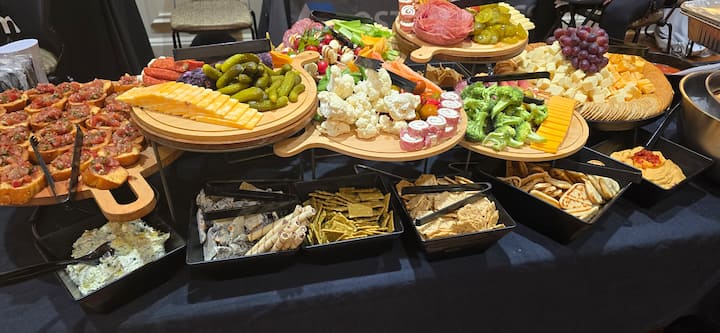 I cater fresh, local meals for groups, including a vibrant charcuterie display.