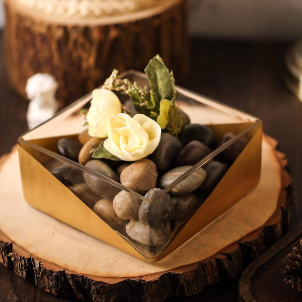 2 pcs 3 in tall Clear with Gold Spray Glass Square Vases