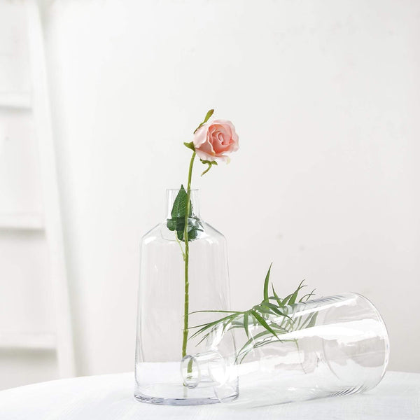 2 pcs Large 12 in tall Clear Glass Vases with Tapered Neck