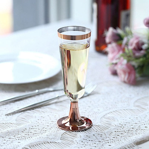 12 pcs 5 oz Clear Rose Gold Rim Plastic Party Champagne Flutes