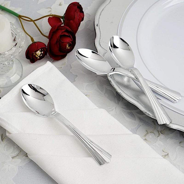 36 pcs 5" Polished Silver Disposable Plastic Party Spoons