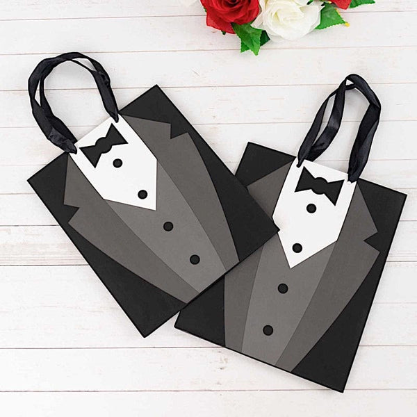 12 Black and White Tuxedo Paper Gift Tote Bags with Satin Handles