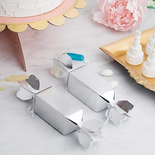 25 Metallic Candy Wedding Favor Boxes with Satin Ribbons