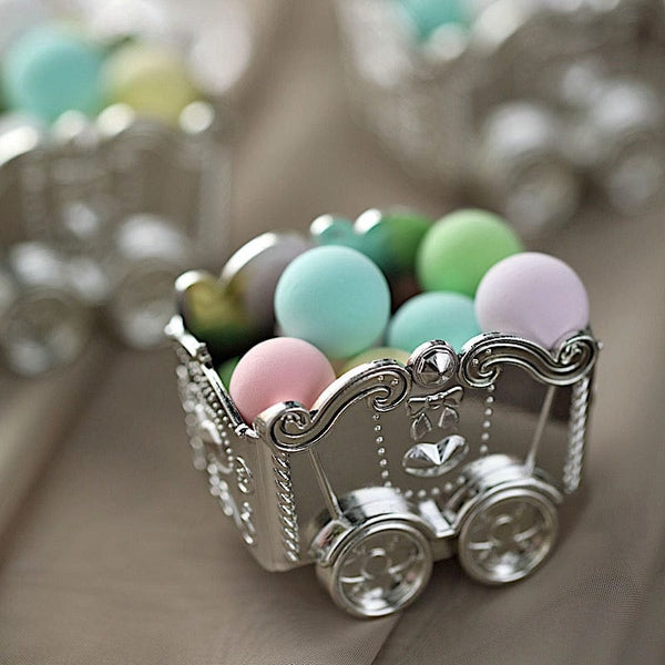12 Silver Metallic Mini Chariot Party Favor Boxes Candy Gift Holders