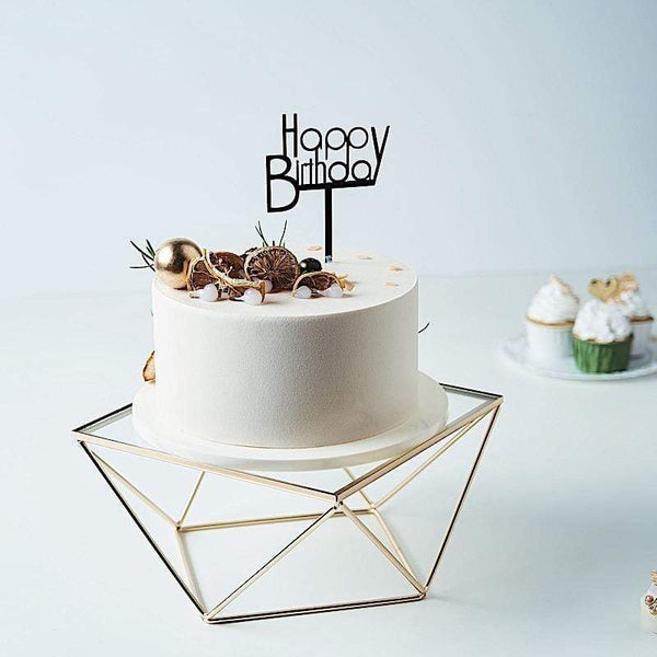 Display your desserts in style with geometric cake stands! Crafted from high-quality metal with a clear glass top, this stand will help to create an elegant look for your party table setting. This cake stand is perfect for all occasion cakes, cupcakes and other goodies. Whether used individually or together with other sizes, this is just the dessert stand you need to bring sparkle to your celebration. WHAT YOU GET: Each order is for one (1) cake stand. Measurements: Width: approx. 10 inches. Height: approx. 5 inches. Base width: approx. 7 inches. Width: approx. 12 inches. Height: approx. 6 inches. Base width: approx. 7.5 inches. Width: approx. 14 inches. Height: approx. 6.5 inches. Base width: approx. 9.5 inches. Glass thickness: approx. 5mm. Inner rim width: approx. 0.25 inch. The inner rims hold the glass in place. The top glass is not permanently attached. Material: Metal and glass. Cake and other decorations are not included.