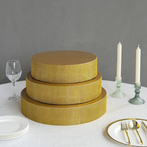 Show off your desserts in style with luxurious round cake stands baroque ornate design! Crafted from high-quality metal, this stands will create an impressive and outstanding look for your party table setting. Perfect for all occasion cakes, cupcakes, or other goodies, this cake stand is just what you need to bring sparkle to your celebration. WHAT YOU GET: Each order is for one (1) cake stand. Measurements: 12" wide cake stand is approx. 3.25" tall. 14" wide cake stand is approx. 3.25" tall. Material: Metal and rhinestone. Other decorations are not included.