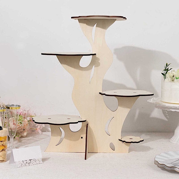 5-Tier Natural 19 in Laser Cut Wooden Tree Tower Cake Stand