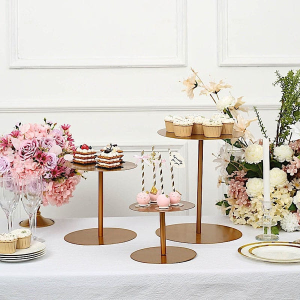 3 Gold Round Metal Cupcake Stands Dessert Display Riser