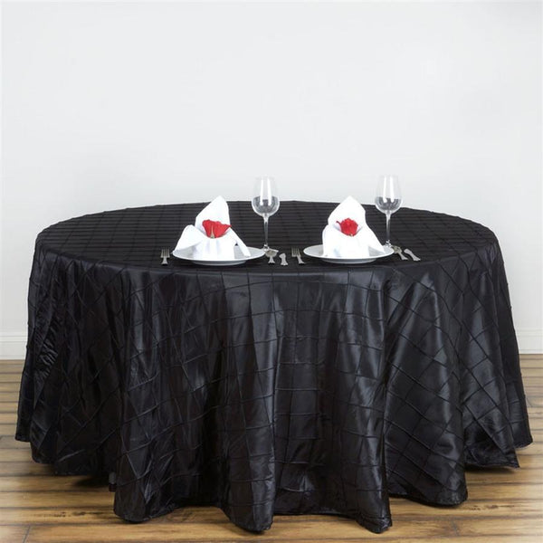 Celebrate your special day and set a particularly welcoming tabletop for your wedding reception or party with these beautiful linens. Always a classic, table linens show your guests you cared enough to add that extra touch. Available in a large variety of colors, there will surely be one that's perfect for you. WHAT YOU GET: Each tablecloth measures approx. 120" in diameter. Material: Taffeta Pintuck It would drop 30" from each side of a standard 60" (1.52 m) wide table. Size of pintuck squares 3" x 3". Please note that due to the fabric size limitation, there will be 1 seam at the end of the 120" tablecloth. It is made to mix in with the pintuck 3" squares so it is very difficult to spot and it will not ruin the look of the tablecloth. Edges are folded and then hemmed. Must be hand washed. Do not put in dryer, hang dry only.