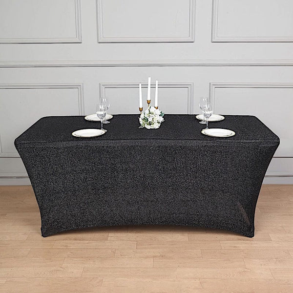 6 feet Fitted Spandex Rectangular Tablecloth Metallic Tinsel Table Cover