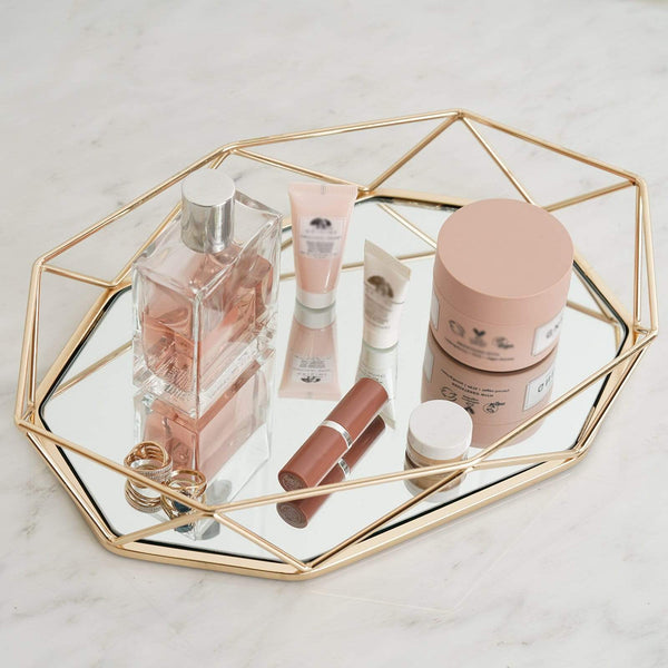Gold 14x9 in Mirrored Metal Geometric Decorative Serving Tray