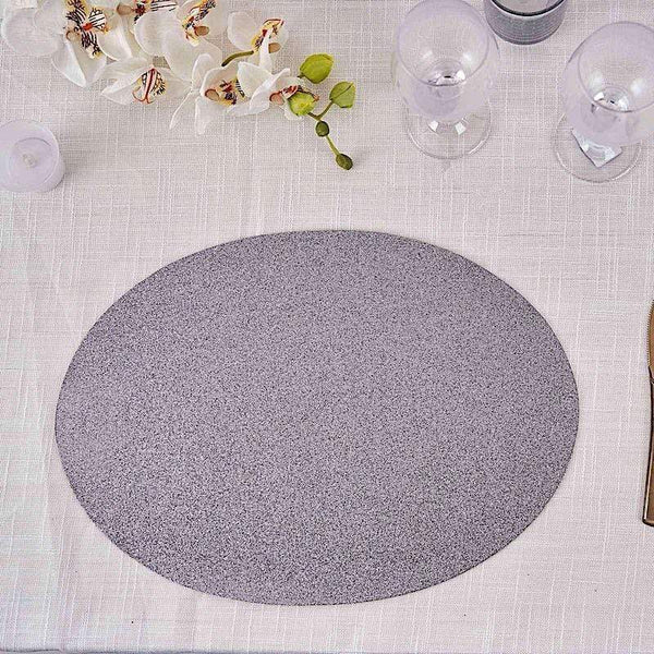 Create the perfect mood for every dinner occasion with these sparkling placemats! These multipurpose glittered placemats can be used in a variety of ways. Whether as chargers for your dinnerware or as a base for your gorgeous centerpieces, these reusable non slip placemats will bring a touch of contemporary style to your formal or casual table setting. Surprise your guests with a charming and unique tablescape. The possibilities are endless! WHAT YOU GET: Each order is for six (6) placemats. Measurements: Length: approx. 16.5 inches. Width: approx. 12 inches. Thickness: approx. 0.6mm. Material: Faux leather with Glitter. Nonslip and reusable. Wipe with a dry cloth to clean. Tableware and other decorations are not included.
