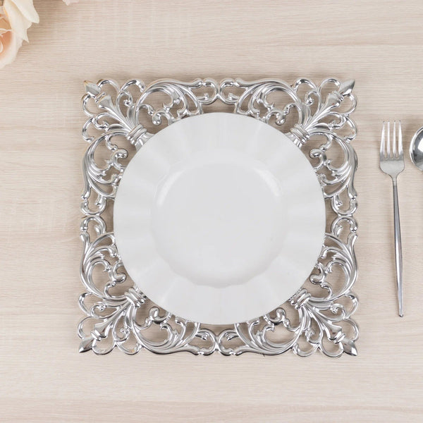6 Square 12 in Vintage Acrylic Charger Plates with Hollow Lace Borders