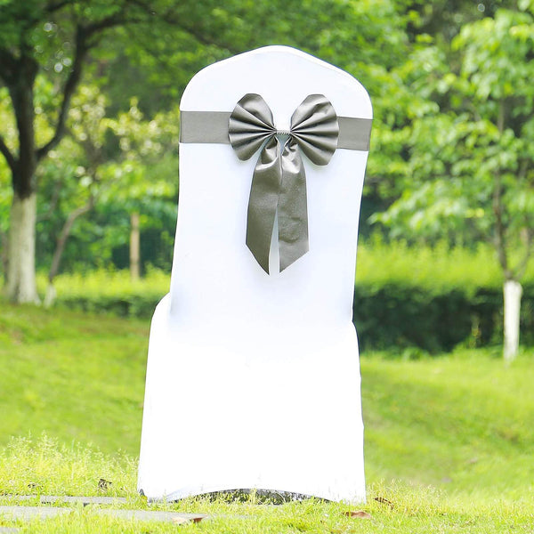 5 pcs Reversible Satin and Faux Leather Bow Tie Chair Sashes with Buckles