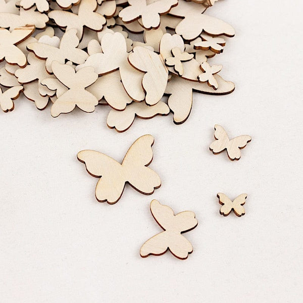 100 Natural Wood Butterfly Cutouts Party Tabletop Decorations