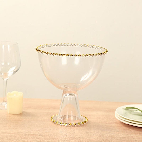 8 in Clear Compote Pedestal Bowl Flower Vase with Gold Beaded Rim