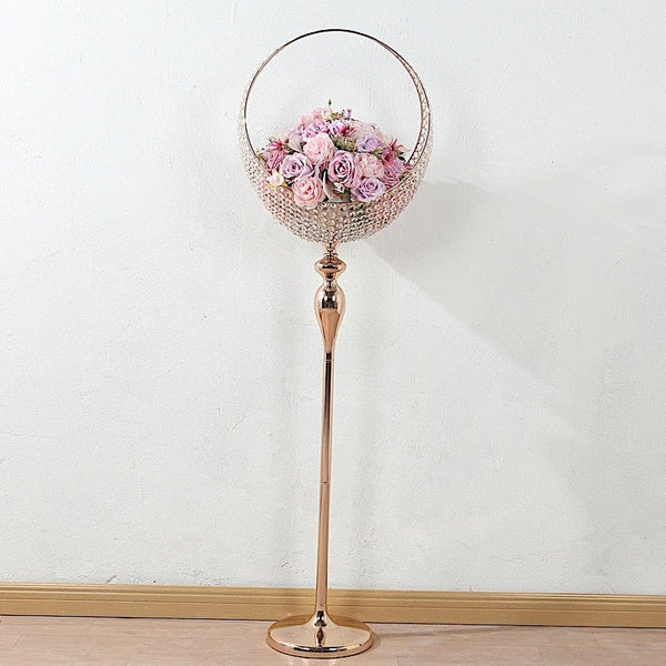 4.5 feet Gold Crystal Beaded Metal Candle Holder Stand in Half Moon Basket Design