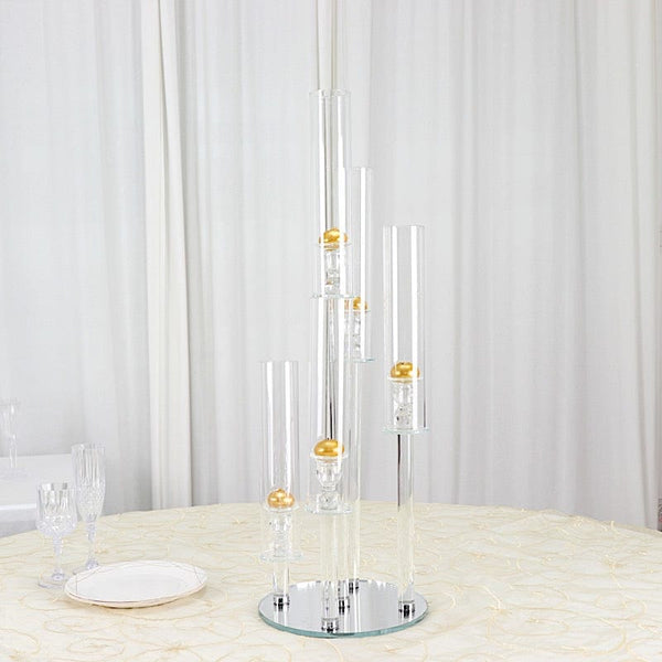 32 in tall Clear 5 Arm Round Crystal Glass Candelabra Taper Candle Holder