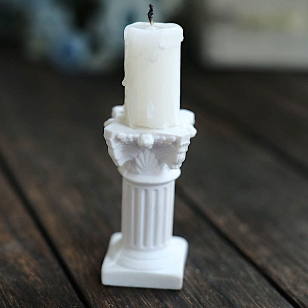 6 White Resin Mini Roman Column Taper Candle Holders Set