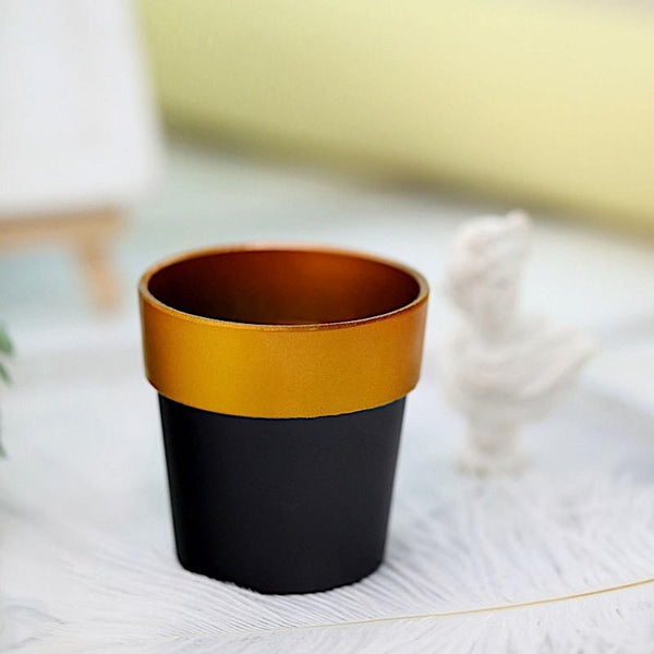 These charming 3" tall plastic pots will bring a whole new level of style to your home decorations! Designed with a stylish rim, metallic finish and a drainage hole at the bottom, these plastic plant pots will serve both style and functionality. Go for an earthy feel by filling these pots with your green plants and succulents or create a refreshing ambiance for your home by showcasing your fresh or artificial seasonal blooms. These versatile flower pots will also look great as centerpieces for your indoor or outdoor parties, weddings or any special occasions and a perfect gift choice for your loved ones. The possibilities are endless! WHAT YOU GET: Each order is for three (3) plastic pots. Measurements: Height: approx. 3 inches. Top width: approx. 3 inches. Base width: approx. 2 inches. Rim width: approx. 1 inch. Pot thickness: approx. 2mm. Bottom hole for drainage. Material: Plastic. Succulents, plants, flowers and other decorations are not included.
