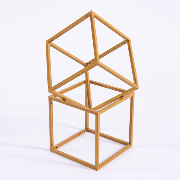2 pcs Gold Matte Metal Geometric Square Stands Flower Vase Holders