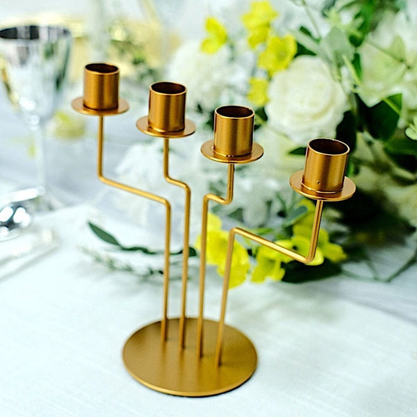 2 Gold 4 arm Metal Geometric Candelabra Taper Candle Holders