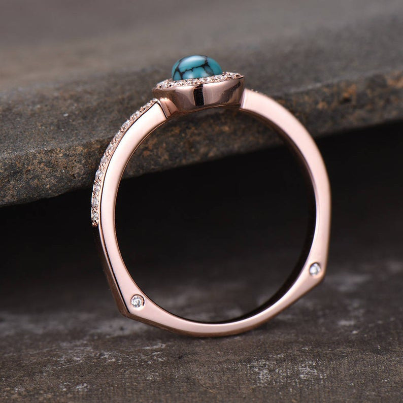 Diamond Halo 4*6mm Pear Shaped Turquoise Engagement Ring Rose Gold 14K/18K/Silver