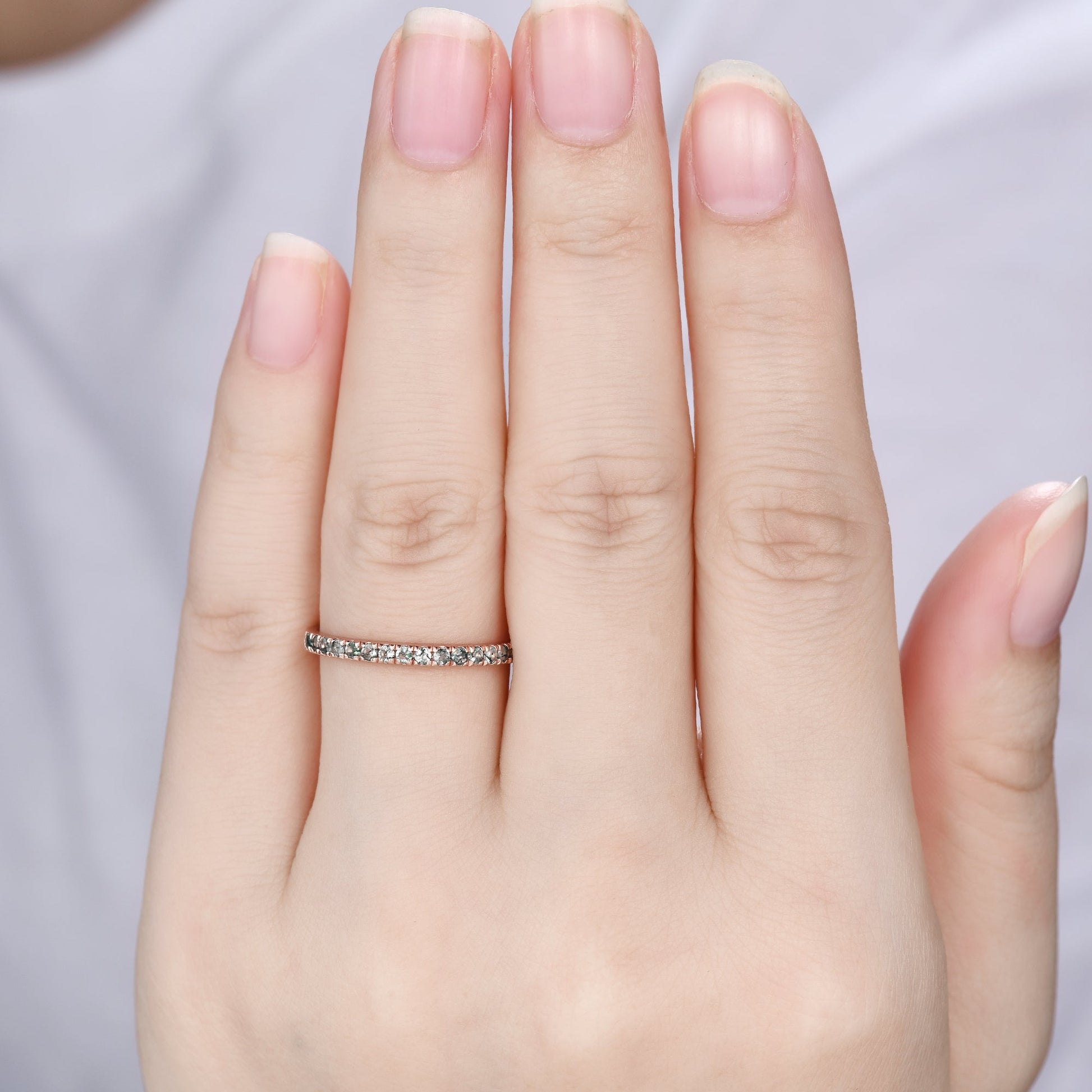 Green Moss Agate Wedding Band Rose Gold Half Eternity Ring Petite 2mm