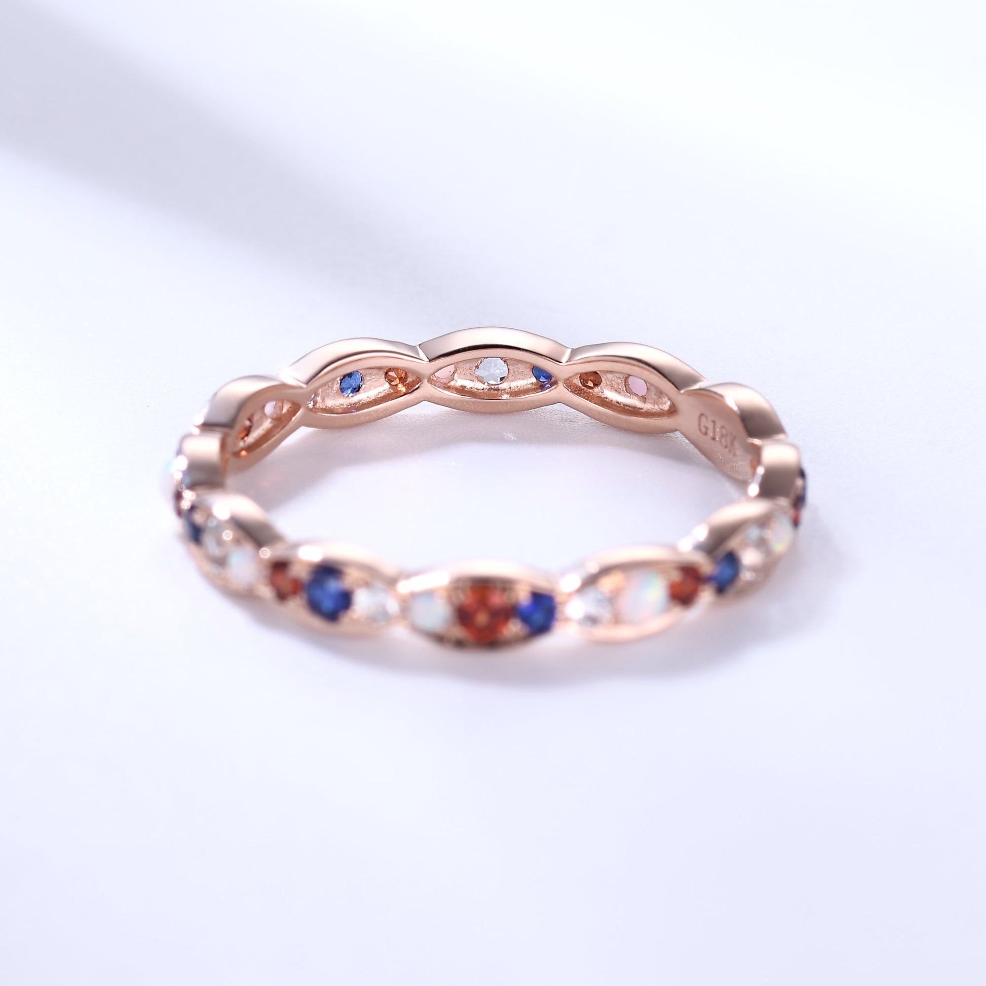 Family Birthstone Ring Rose Gold Wedding Band Multi Gemstone Full Eternity Ring