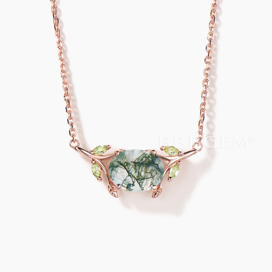 2CT Oval Cut Natural Moss Agate Wedding Necklace Peridot Twig Leaf Pendant