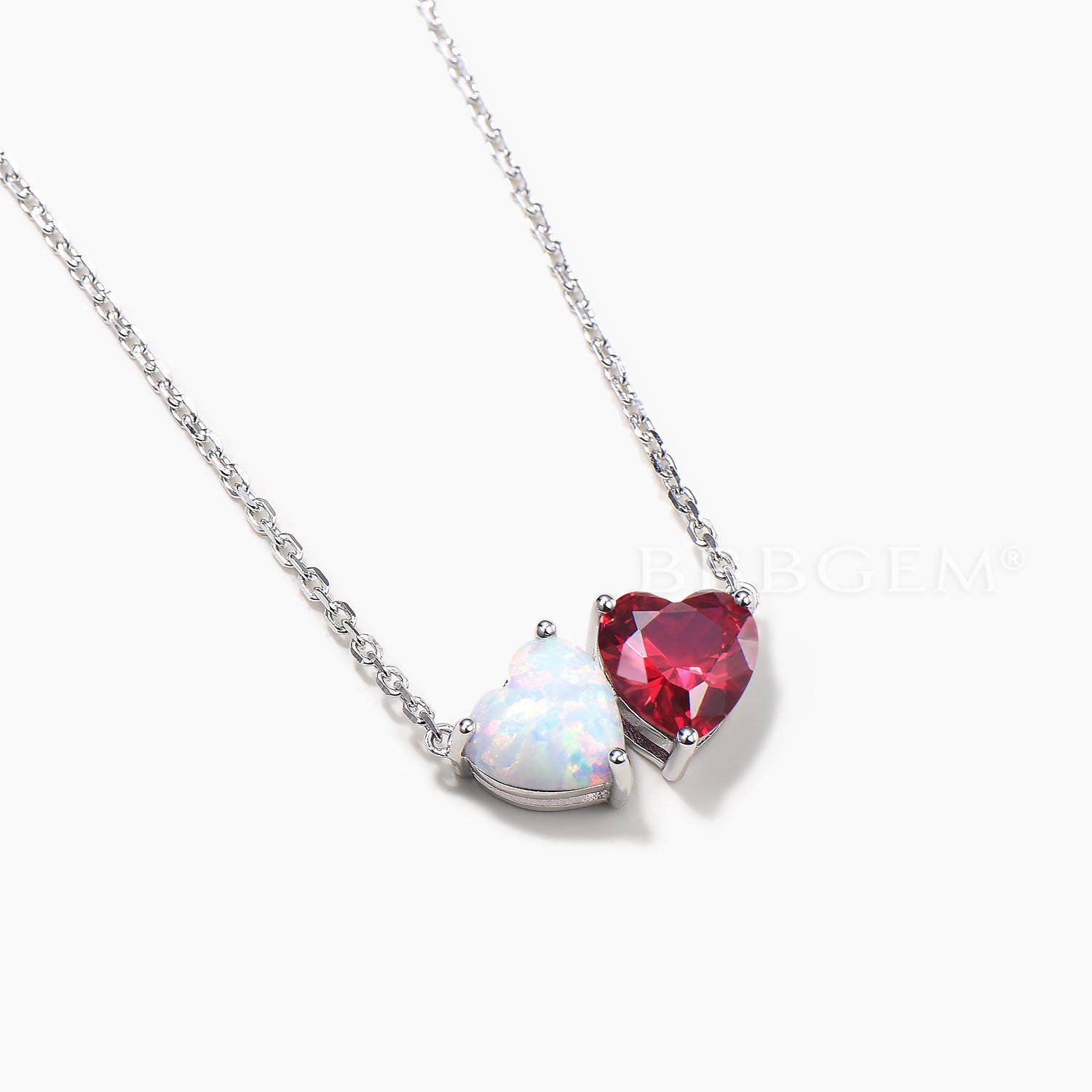 1.2CT Heart Cut Opal Ruby Wedding Necklace White Gold Toi et Moi Pendant