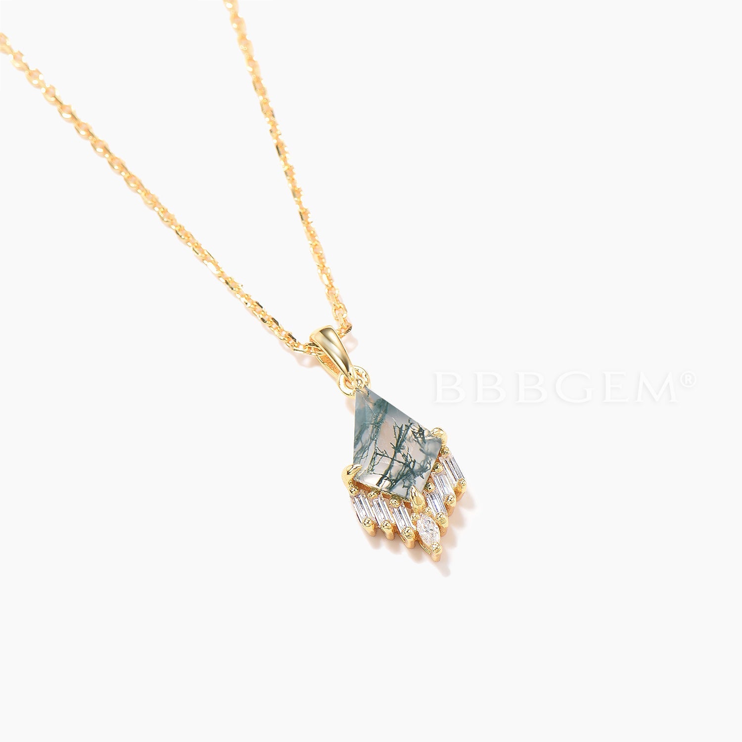 Kite Cut Natural Moss Agate Necklace Baguette Moissanite Wedding Pendant