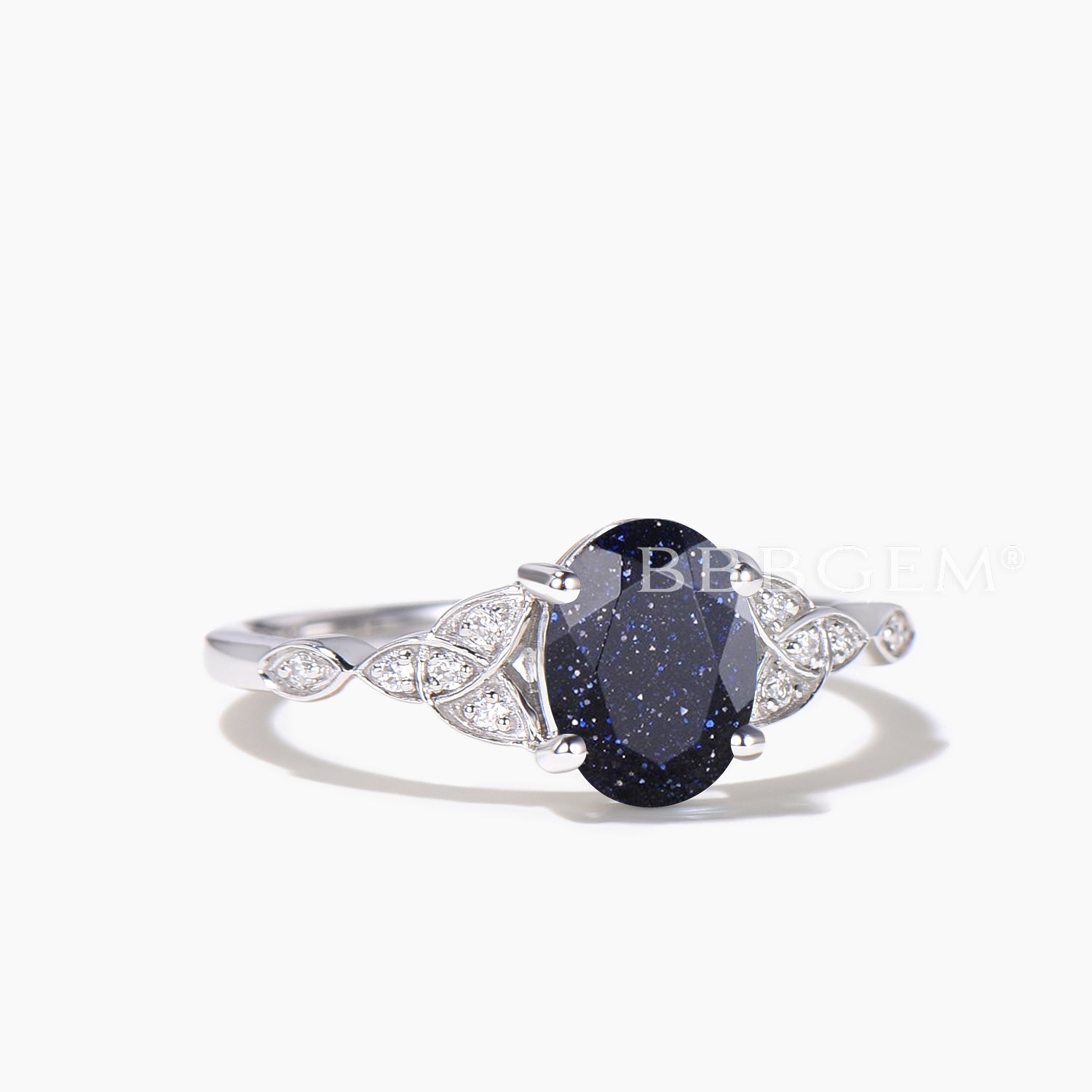 1.5CT Oval Cut Blue Sandstone Engagement Ring Diamond Celtic Knot Ring