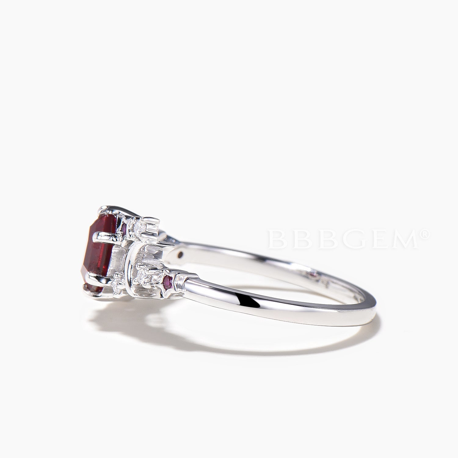 Hexagon Cut Ruby Engagement Ring Diamond Celestial Wedding Ring