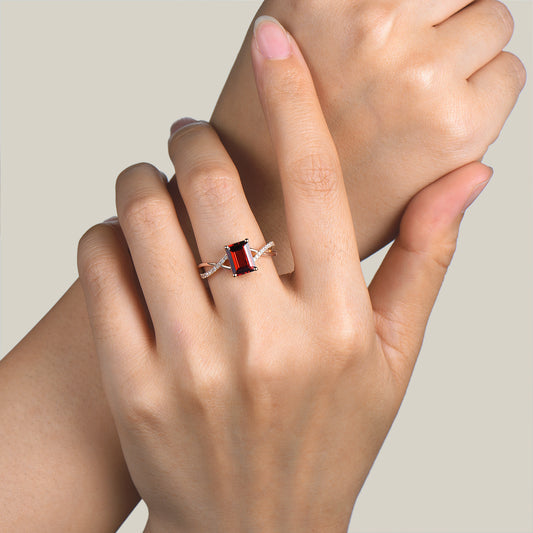 2ct Emerald Cut Natural Garnet Half Eterity Diamond Ring Split Shank Infinity Ring