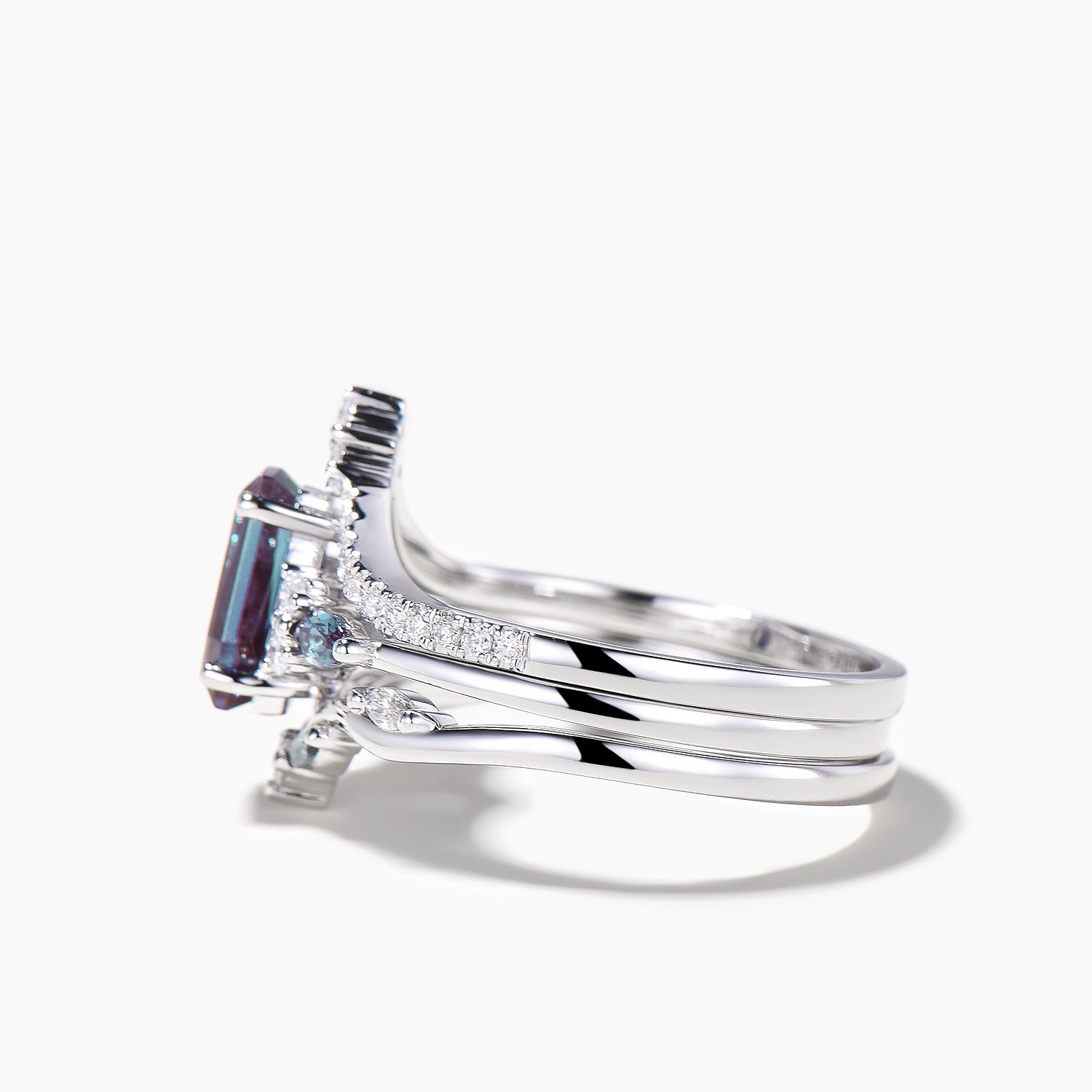 3pcs Coffin Cut Color-Change Alexandrite Diamond Bridal Ring Set