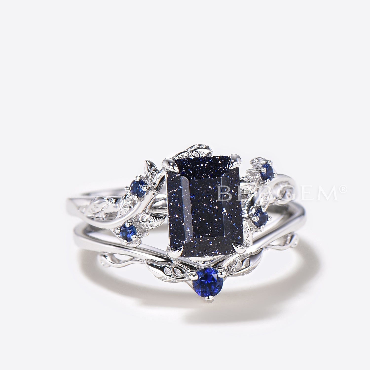 The sparkling blue sandstone centerpiece captures the magic of the night sky, while delicate sapphire accents add vibrant sophistication. Crafted with intricate nature-inspired details, this bridal set symbolizes love, beauty, and individuality, making it a meaningful choice for your special day.