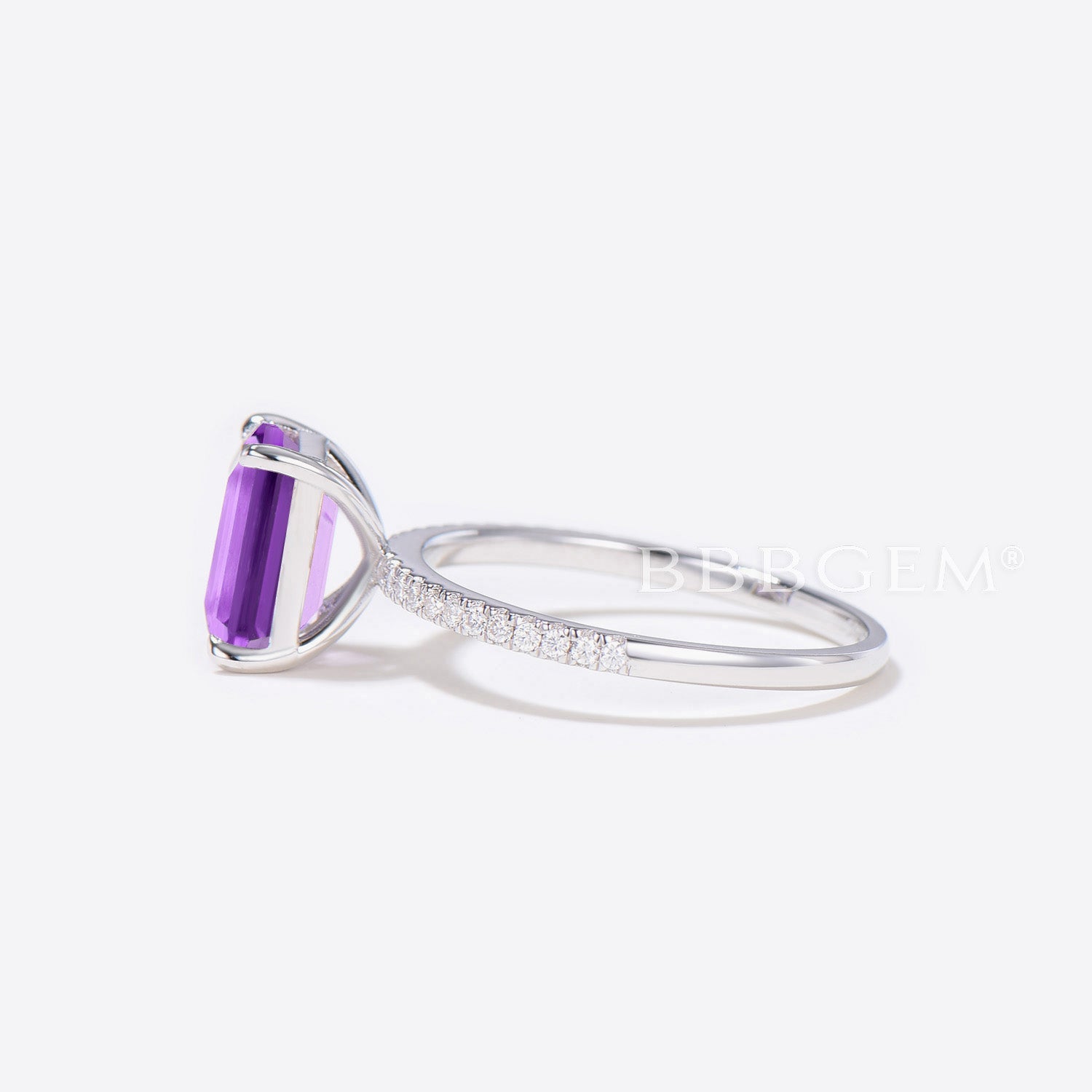 2CT Emerald Cut Natural Amethyst Ring Diamond Wedding Ring
