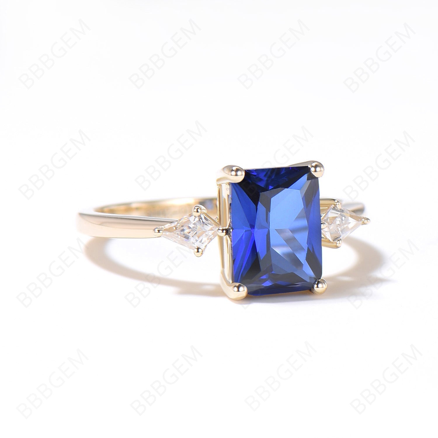 2CT Radiant Cut Blue Sapphire Engagement Ring Unique Three Stone Ring
