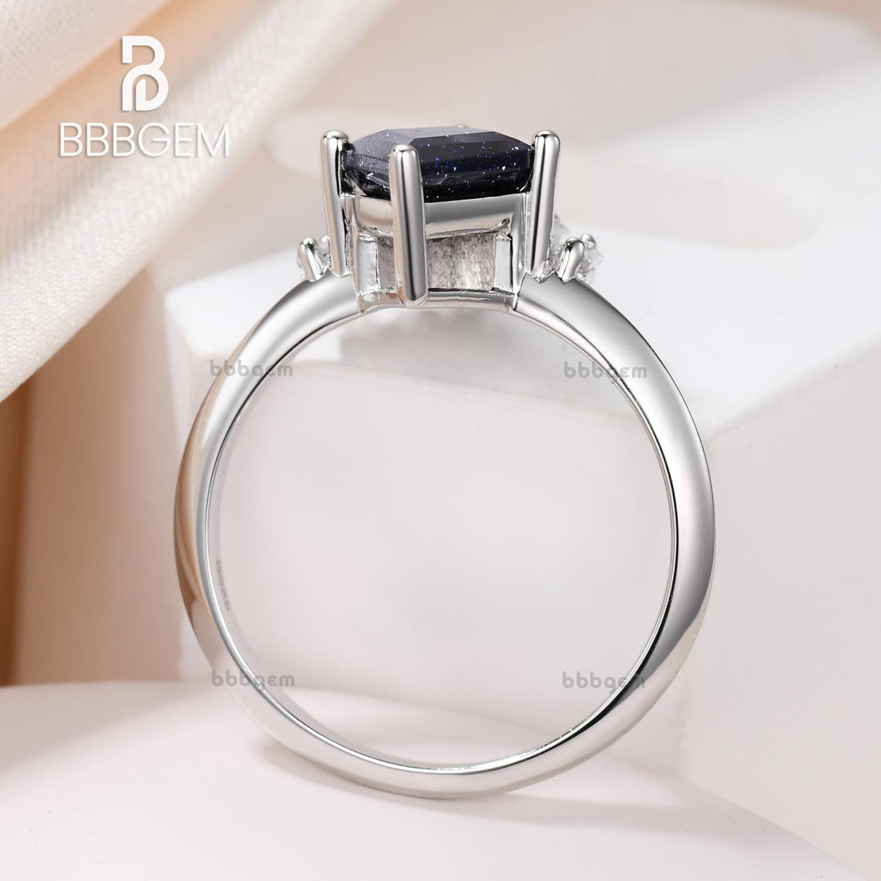 Knife-Edge Kite Blue Sandstone Engagement Ring Vintage Blue Goldstone Horizontal Baguette Moissanite Statement Ring