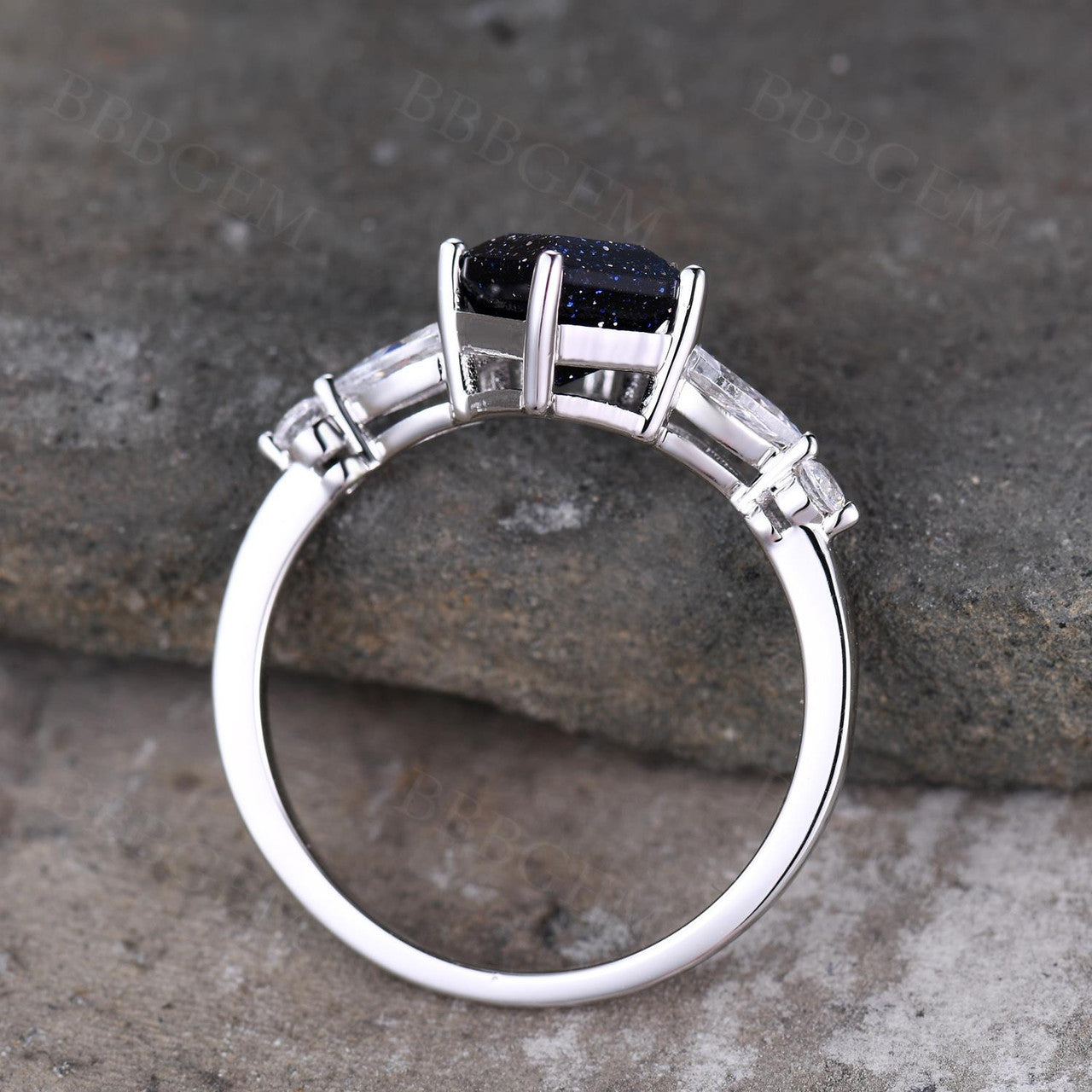 10x7mm Kite Cut Blue Sandstone Engagement Ring Pear Round Cut Moissanite In White Gold