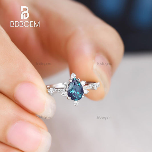 14K/18K Gold 5x7mm Pear Shaped Alexandrite Diamond Engagement Ring Art Deco