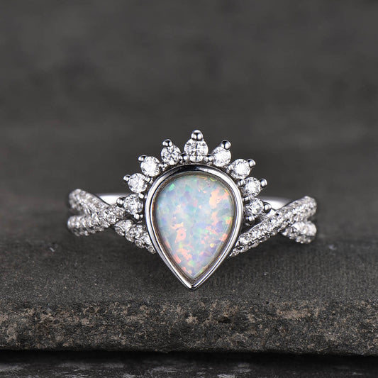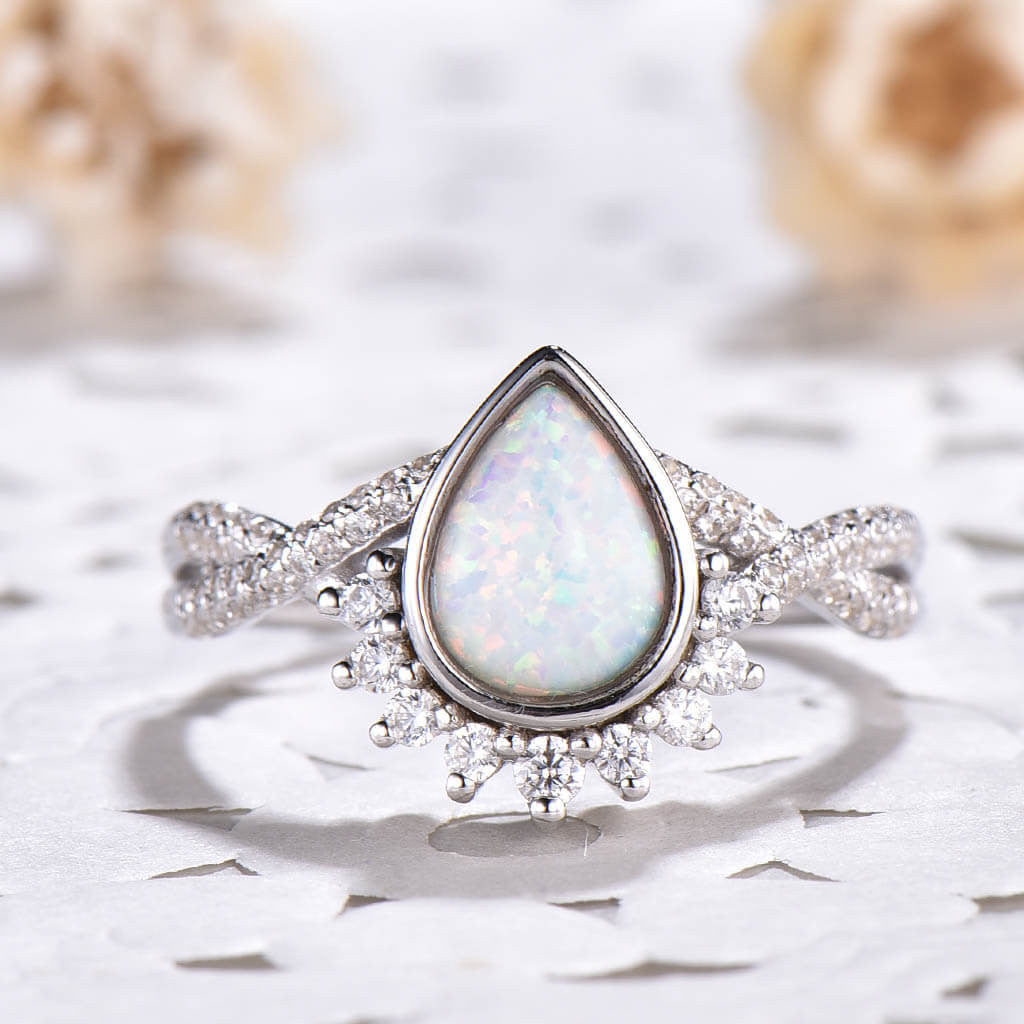 14K/18K Vintage Pear Shaped Lab White Engagement Ring Twisted Band Engagement Ring
